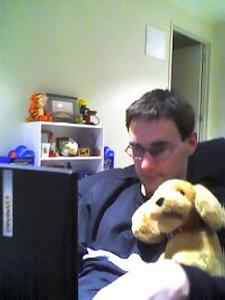 Shane is busy workin! Its lucky that jasper sits quietly!