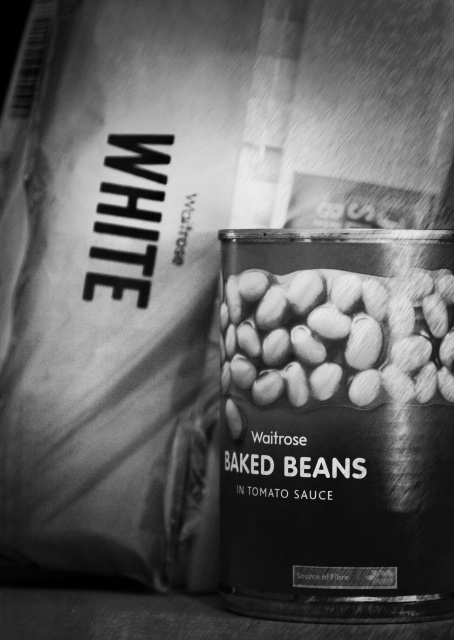 carrying cheap beans, bread and beer