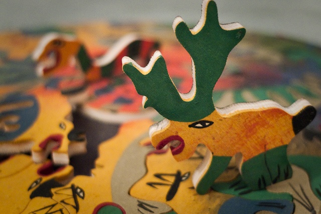 a wooden jigsaw that we brought on our travels