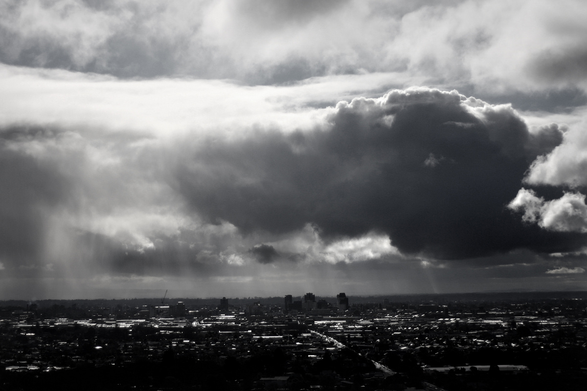 squalls passed over the city all day and this one caught my eye ………. first attempt at b&w, like the effect.