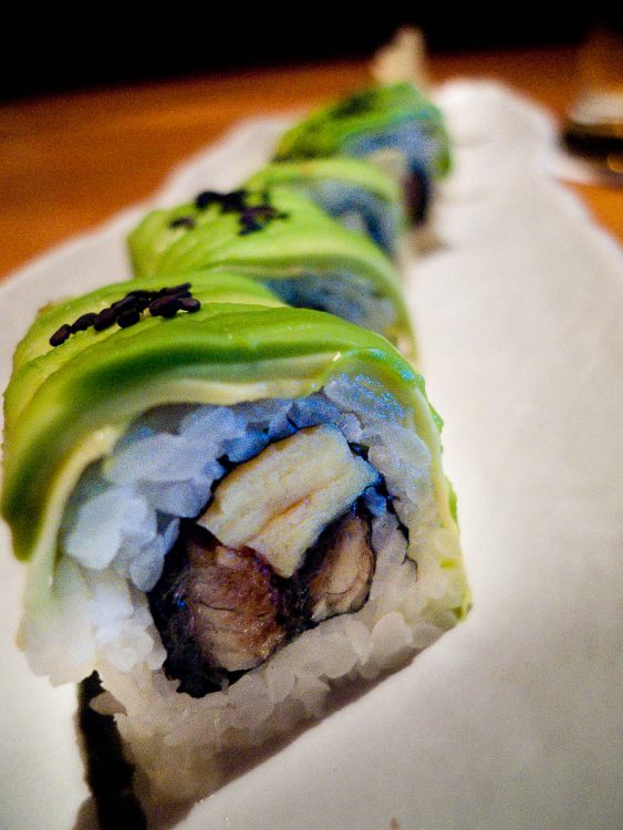 A caterpillar log of eel and avocado – fine by me
