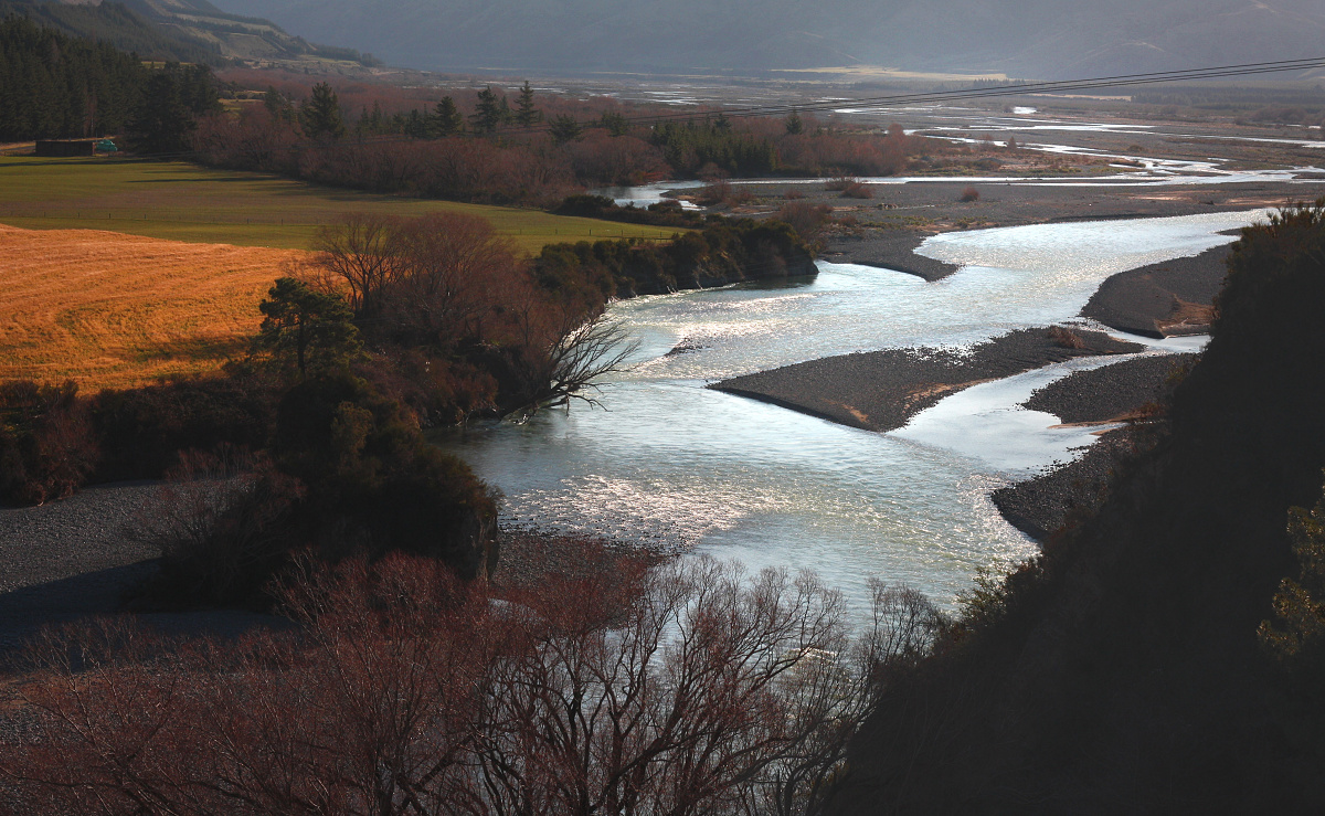 The Waiau River is typical of the many braided rivers in Canterbury – they gently meander through the valleys and across the plains on their journey from mountain to sea .