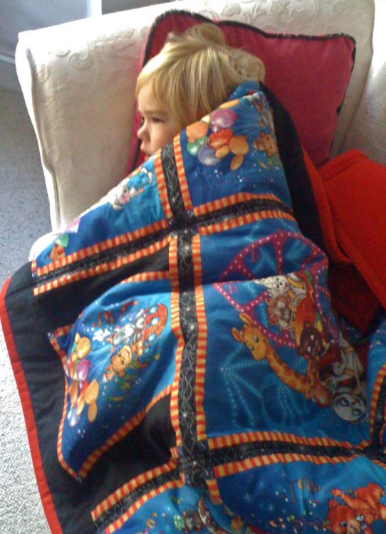 I made quillows for both of our grandchildren – fun to make and fun to have. They are a patchwork quilt, lined with cosy polar fleece, and they fold up into a pocket to become pillows. Fabulous for travelling, or for them to keep in their caravan 🙂