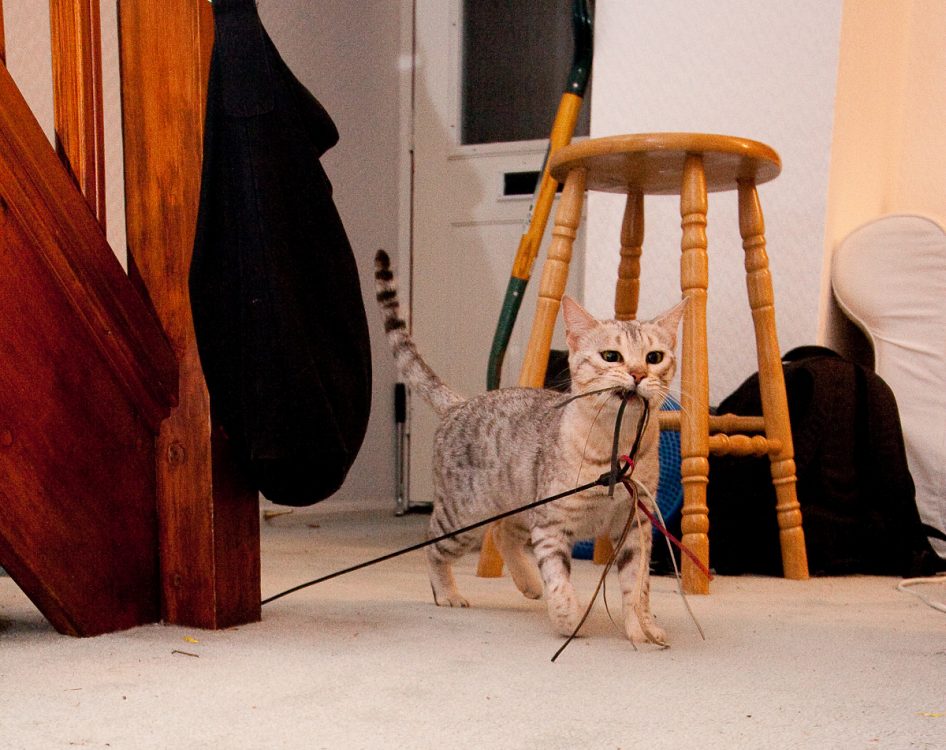 She can be sound asleep on the bed when you give the leather a little shake, and 2 seconds later shes off the bed, down the stairs and into attack mode.