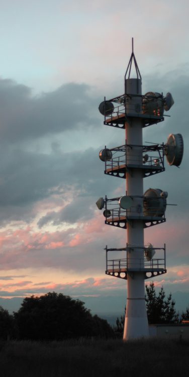 How could we live our lives without these towers dotted all around the country – impossible I guess. This one with its big [url=http://www.blipfoto.com/view.php?id=422516&month=12&year=2009]circular[/url] dishes is at the lower end of Victoria Park where molly loves to play. Normally I don’t really notice it, but tonight we had to park beside it as we were late going for our walk and the park gates are locked at 9pm.