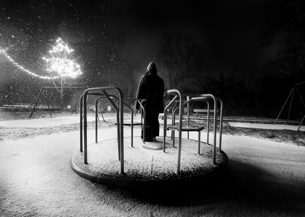 The problems of the world disappear under the snow, and all that’s left is two kids playing in the snow.