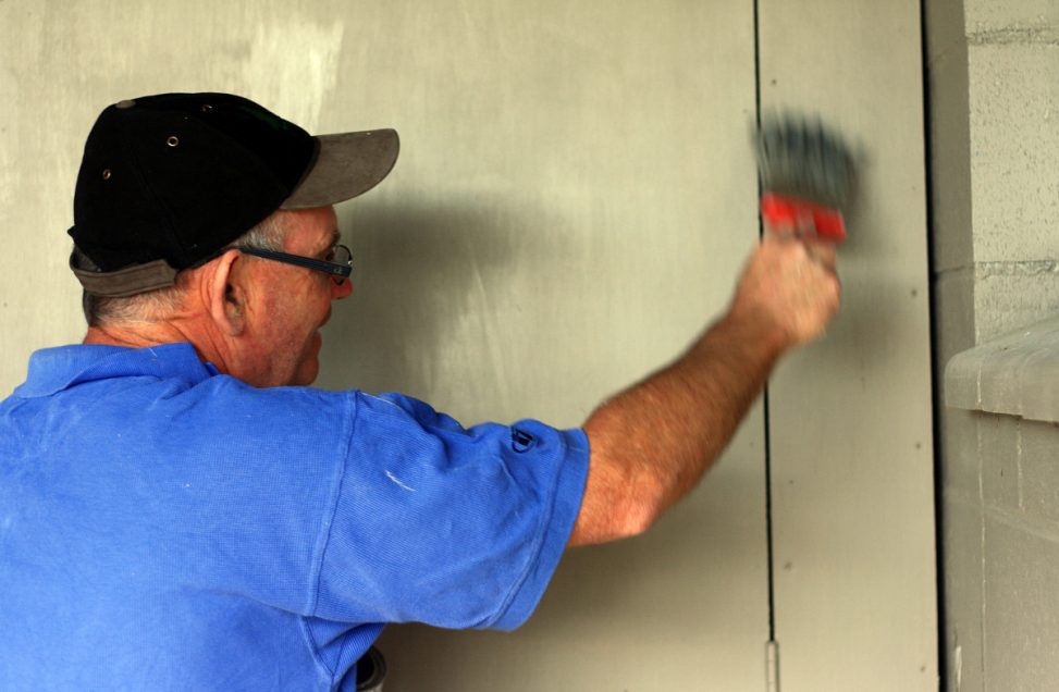 gd spent the afternoon finishing the last of the painting after the additions to our bach, while Molly mostly lay on the lawn watching him!!