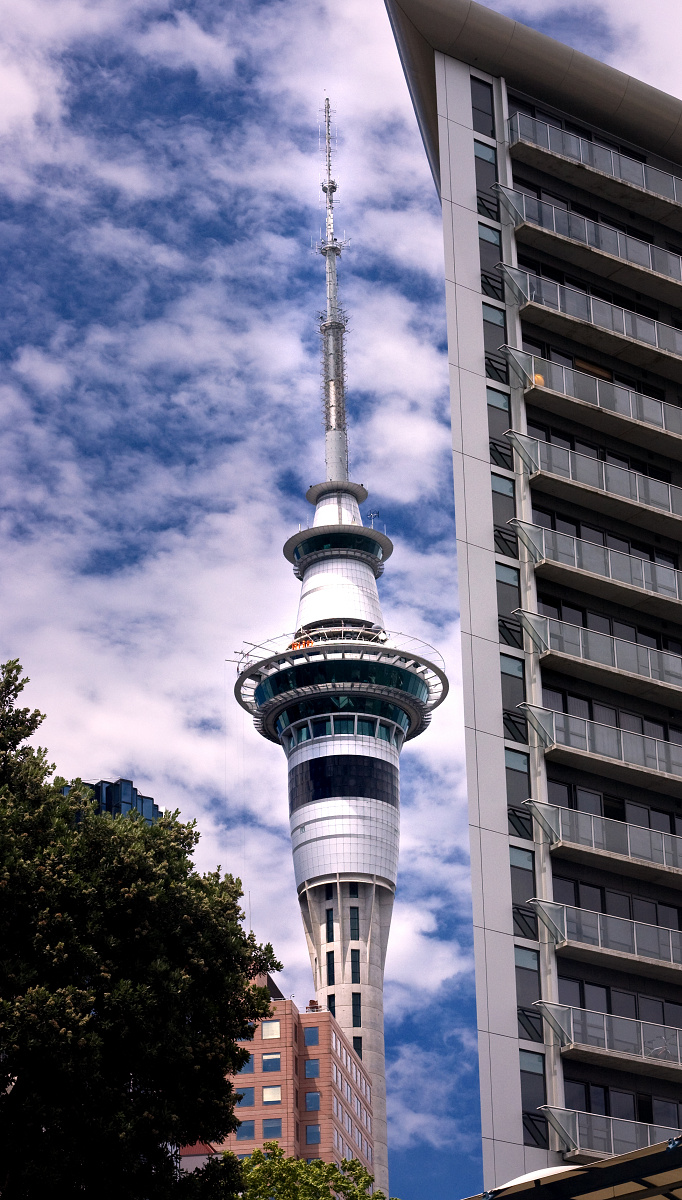 This Auckland icon is in the centre of the Central Business District so is always useful to help me find my way back to the city. I am one to wander off through the many parks in the area and then am never sure which way is home. There is a revolving restaurant at the top of the tower, and also an option for daredevils to jump off the platform around the tower ……….. there were plenty of daredevils about today ready to take the plunge. You may be able to see the blob of orange in the image – that is the sky jump team preparing for a leap!!