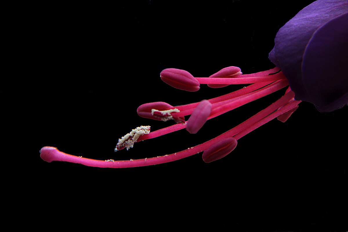 Another dull day, but a wee shaft of light caught the fuschia flowers and made them glow ……………. so out came the macro 🙂