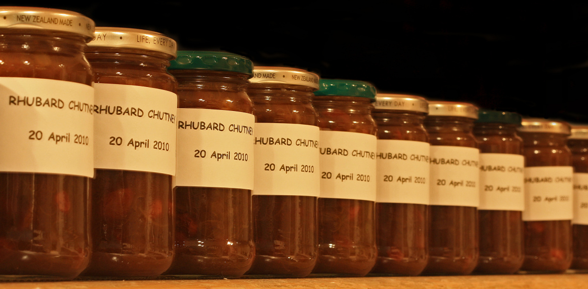 Rhubard Chutney is stinky to make but delicious to eat. Not a bad line up – apart from the crooked label on the end – and this is only a few of the jars he made from his 3kilos of rhubarb.