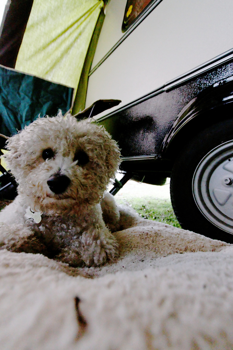We soon had a plan in place, and even Little Joey found a dry corner of the awning to pass the time waiting for a break in the weather.