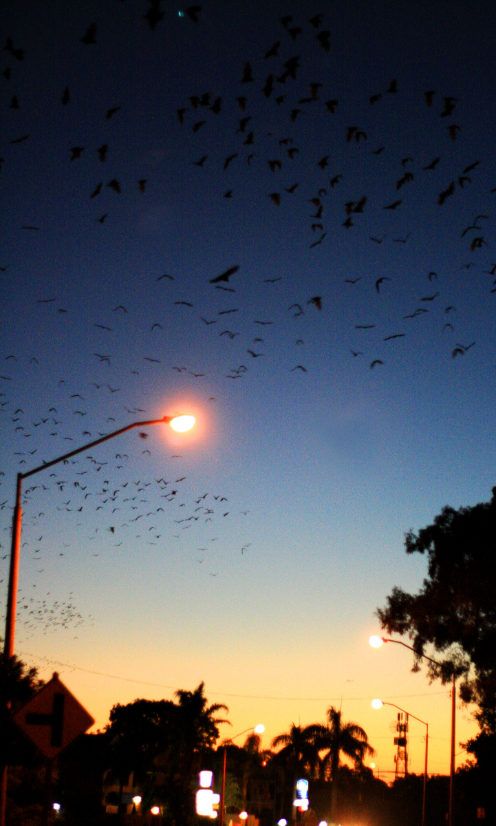 60,000 fruit bats head out to find food at dusk each evening – in mid summer there were about 2 million!! Must be devastating for the fruit farmers, but a specatular sight for us – although very difficult to capture as they move so fast.