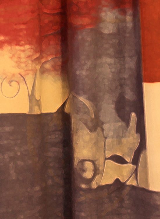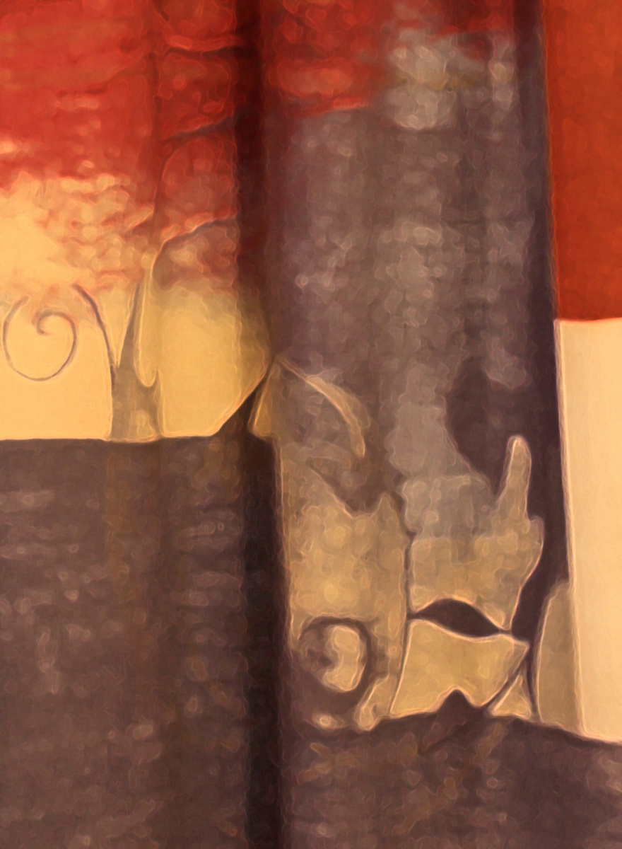 I like the colours and pattern ……. I think I can see a man putting a plant into his garden, with his watering can beside him and his cat sitting on a ledge watching him!?!?!?!