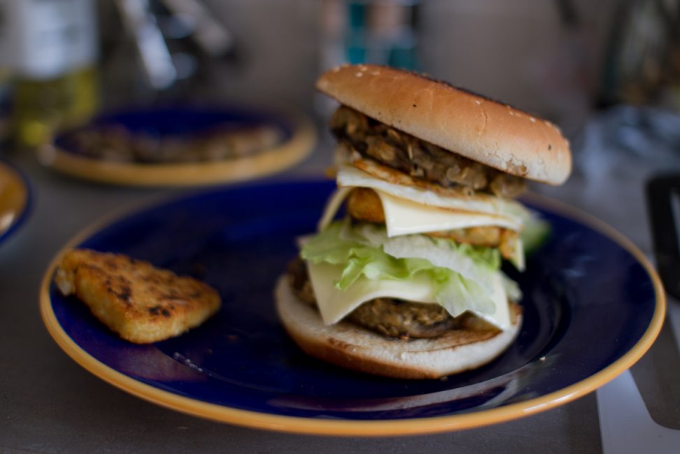 Why is it that a few simple things that looks like not much on the BBQ, always look ridiculous when you jam it into a burger???