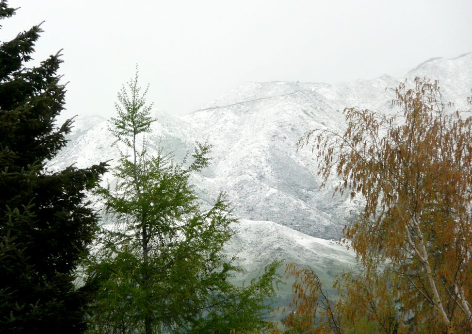 Opened the drapes this morning to be greeted by snow on the hills behind the new spring growth on the trees. We had skiffs of snow in beween hail showers all morning, although it didn’t lie in the village. Very brrrrr ……. so spent the day eating, drinking and playing pictionary ………. serious challenges at pictionary as there is a lot at pride at stake. Cooked a delicious roast lamb and veges for lunch – and the wine seemed to reduce the importance of the challenge!!