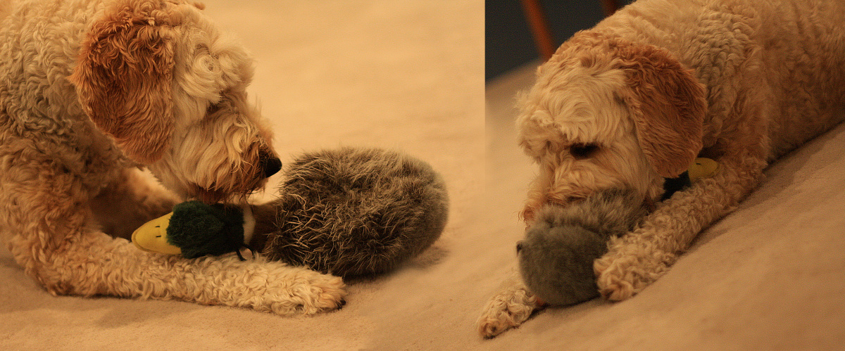 Molly loves her duck – whether cuddling it, carrying it in her mouth, or attacking it for the big kill !?!?!?
