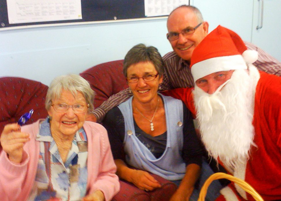 It was the home Christmas party tonight and she loved it. There were lots of people and activities for her to watch and of course party treats. Normally she can only eat soft mashed food, but tonight the little mince pies and the lamingtons were a favourite ……….. and she was delighted when Santa arrived with his basket of chocolates.