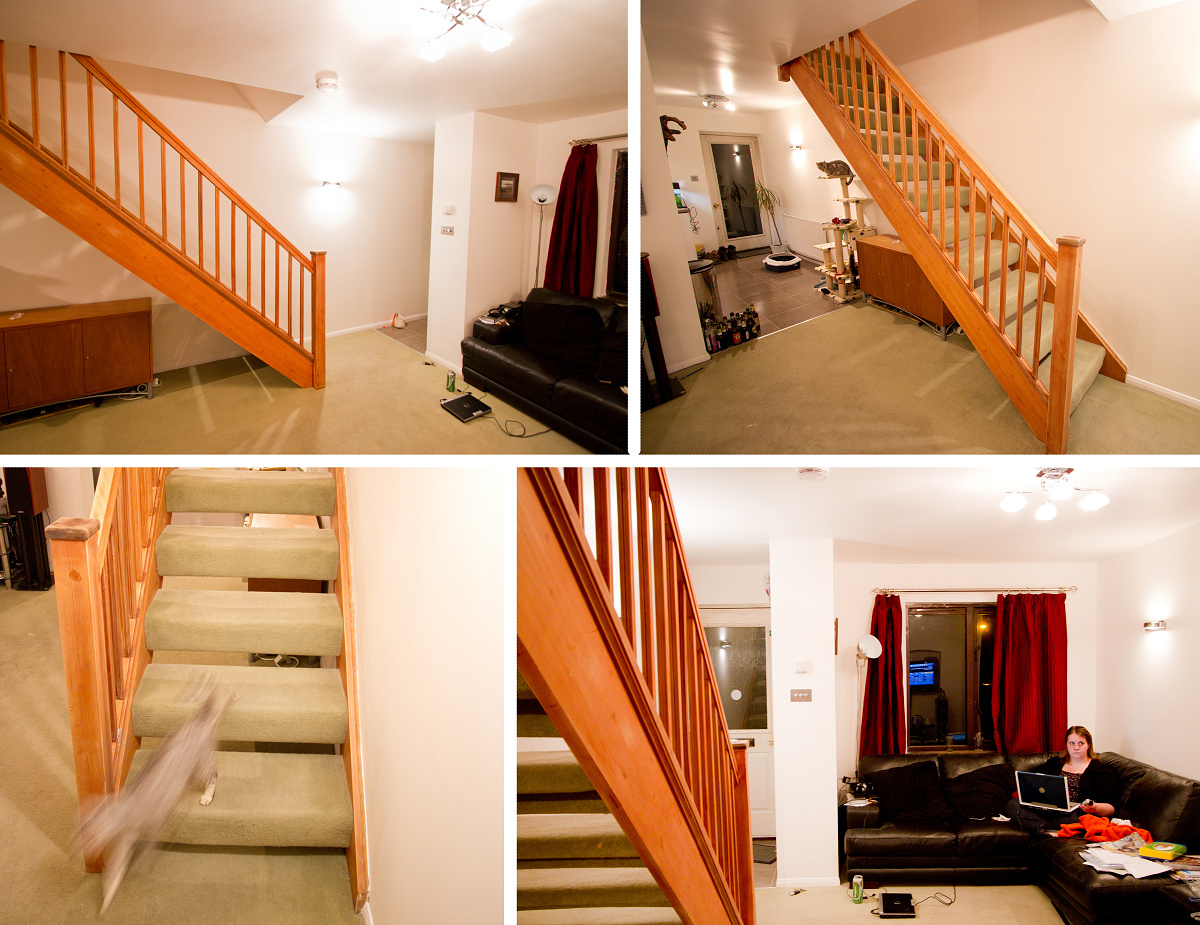 ** A light stain, to make the most of the pine wood banister (aim: might be slightly less ‘in our face’ than a white?)
