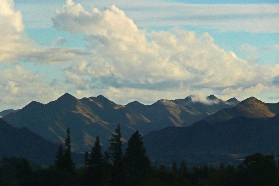 Back to Hanmer for a few days to escape the quakes. I love seeing these hills from our kitchen window. The pic was not clear so added some more grain.