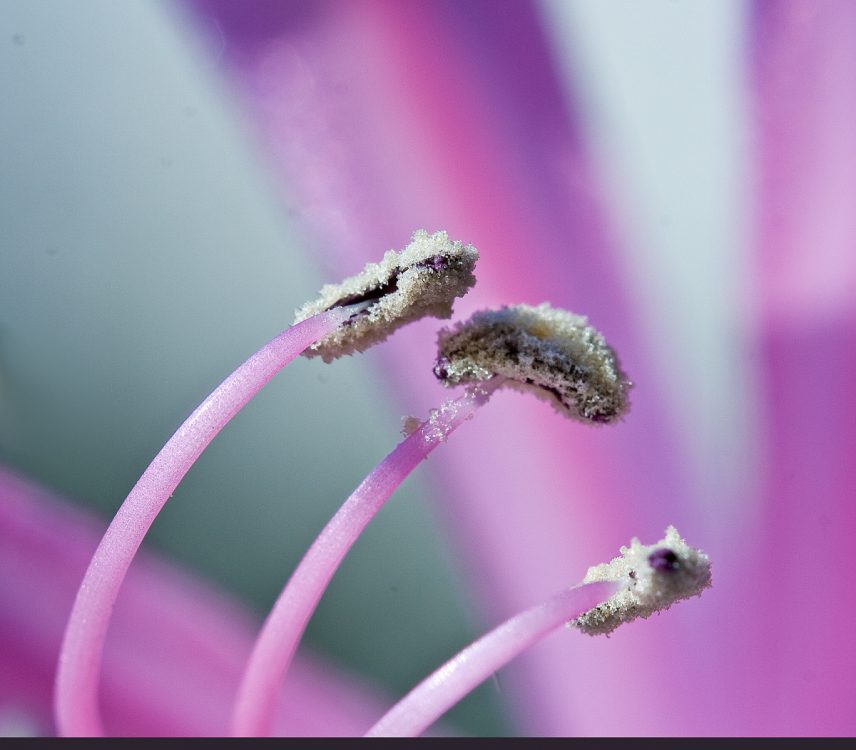 Sparkling packs of pollen on nerine stamens (a favourite flower of mine) ……… and now I can experiment with my new macro lens 🙂
