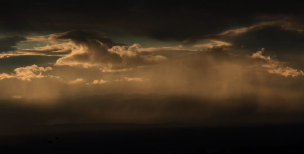 I very rarely use a telephoto lens, but the rain in the mountains looked brilliant this evening so tried to capture it.