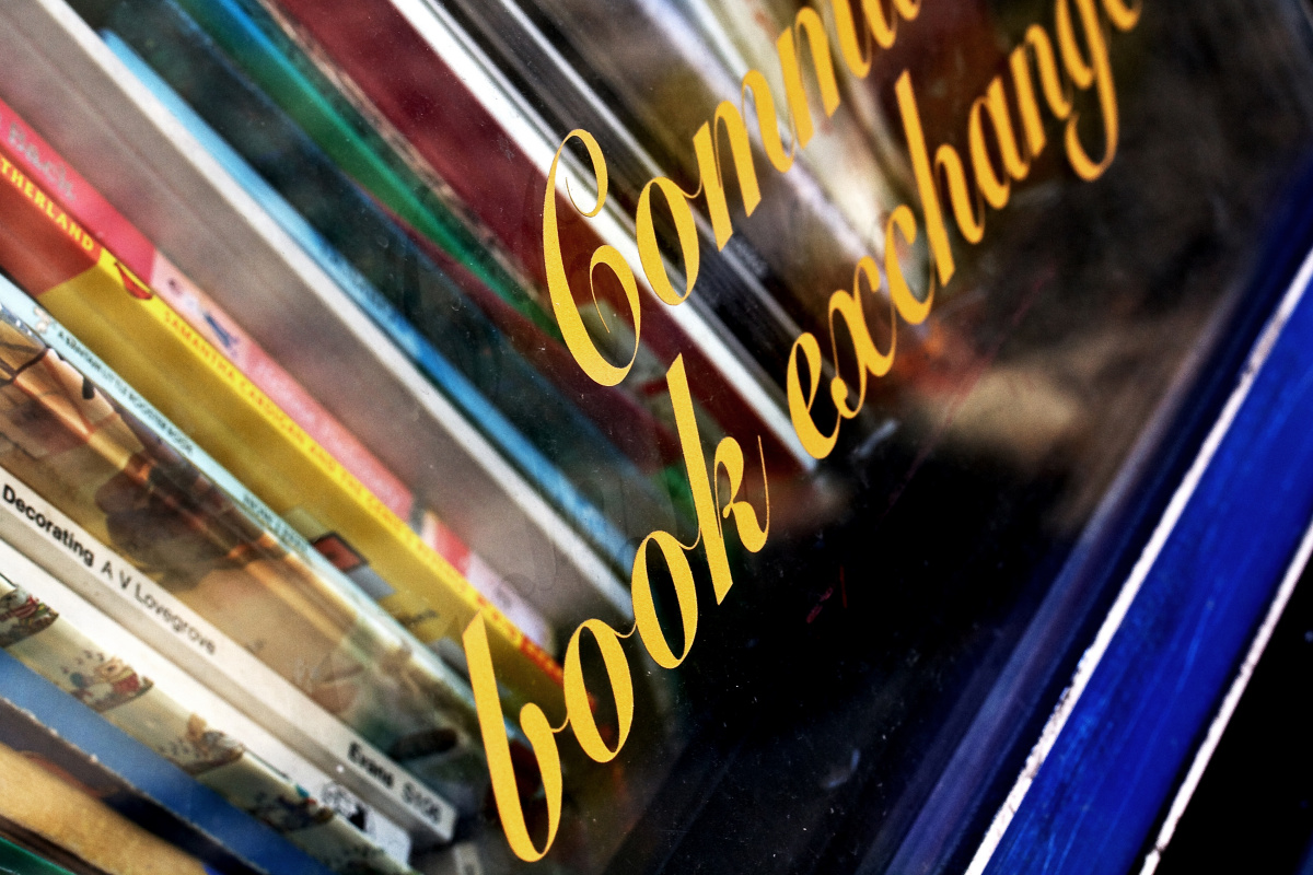 This is a library……………… an old fridge display cabinet filled with books which are free for anyone to take and anyone can add to the collections.
