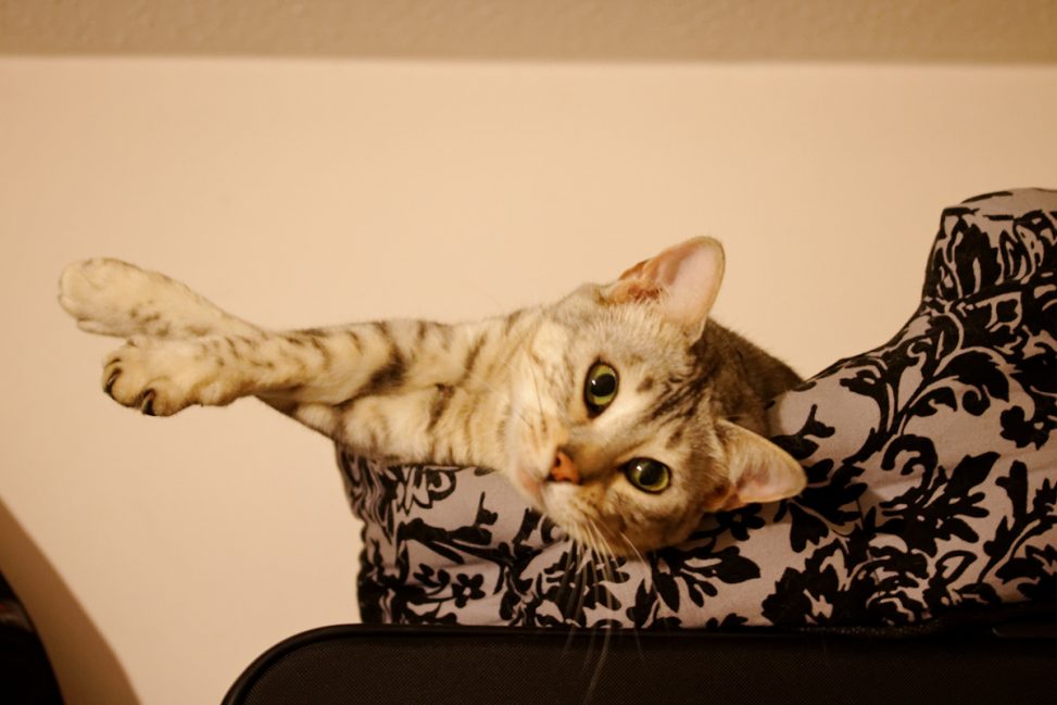 In fact, she couldn’t have spread out any more without falling off her wardrobe perch.
