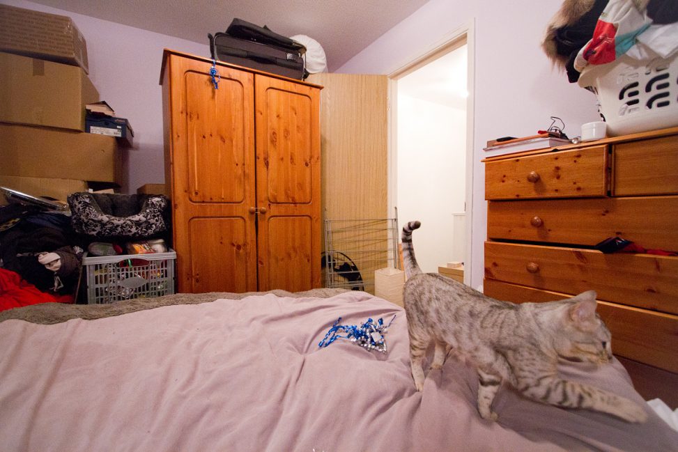 So, everything was piled out of our room into the small spare room while we decorate.
