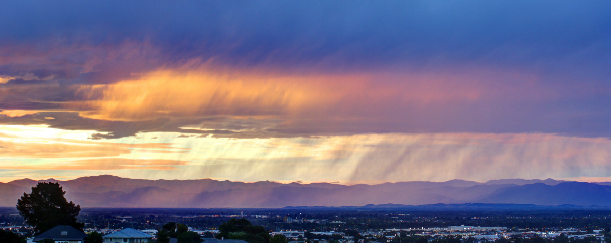 Watched the rain clouds pass over the plains and the city all afternoon, so by sunset I had to try to capture the wispy strands in the distance.