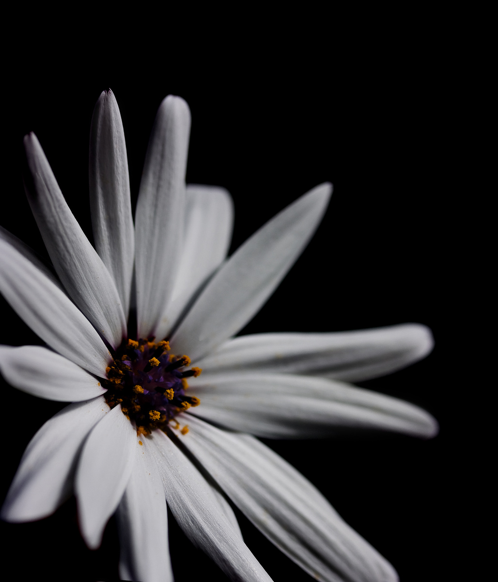 I had left the osteospernums from three days ago sitting on a black sheet of paper.
