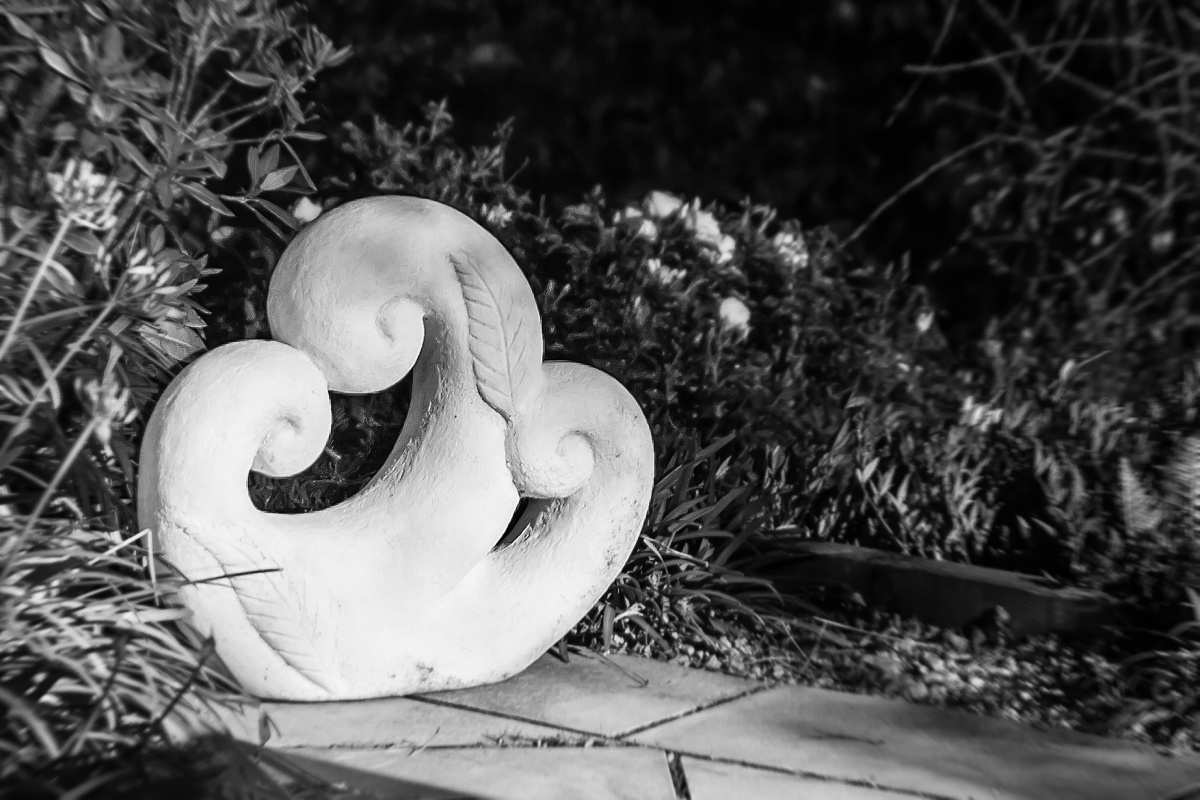 This stone carving in our garden captures some of our iconic kiwi shapes – the silver fern is the symbol of NZ and and the koru is the unfurling fern frond symbolising new growth.