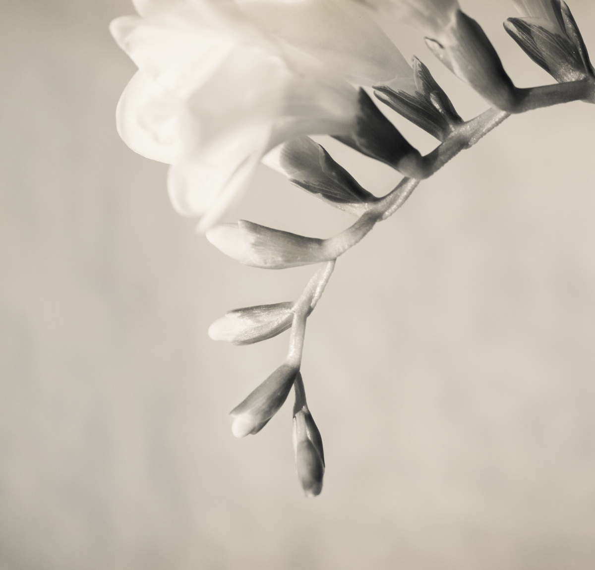 But once again it is grey and gloomy here ………. although a bunch of friesias on my bench helps brighten up my day.