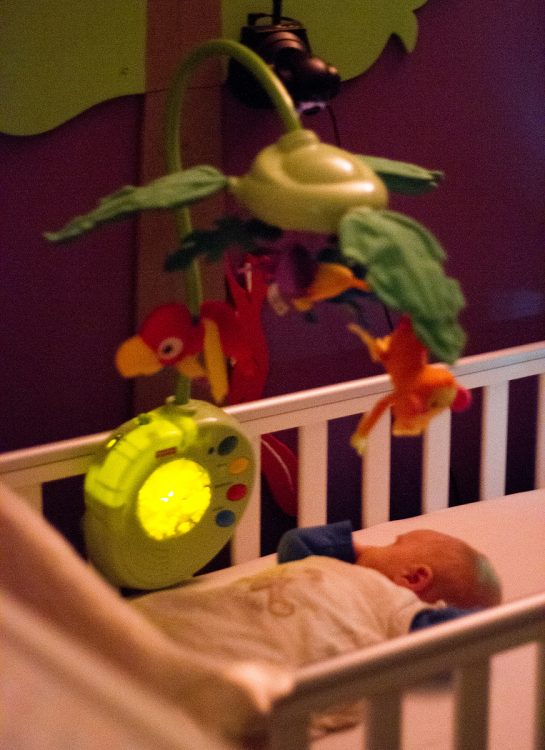 I love peeking through the door gap to our little mans room.