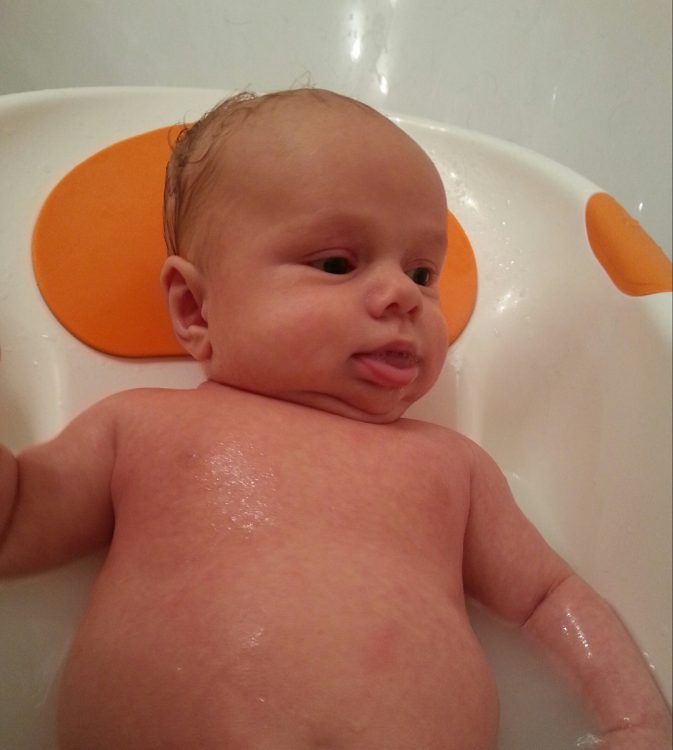 We are very lucky as CJ loves bath time. There are never any tears, just lots of smiles and gurgling. He especially loves having the water dripped over his head.