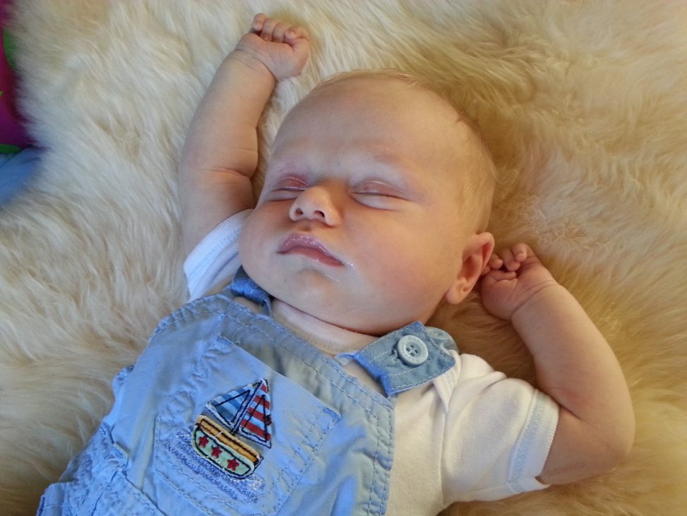 Today we have had lovely weather, but that means it is very hot inside. So what better way to stay cool then to go to sleep on a sheep skin rug.