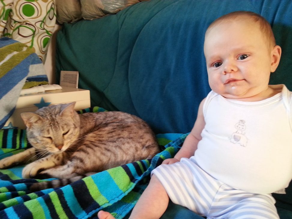 Today I decided to see whether she would tolerate having a photo taken with CJ. She seemed happy enough although it could just be that it is too hot to care.