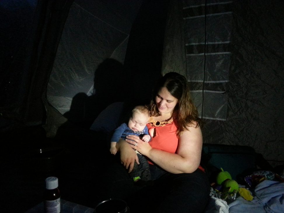 Ok, its not the best photo but after arriving at the camp site, putting up the tent, cooking tea and starting to get ready for bed it was all to much for CJ and he crashed before we could take a decent photo…