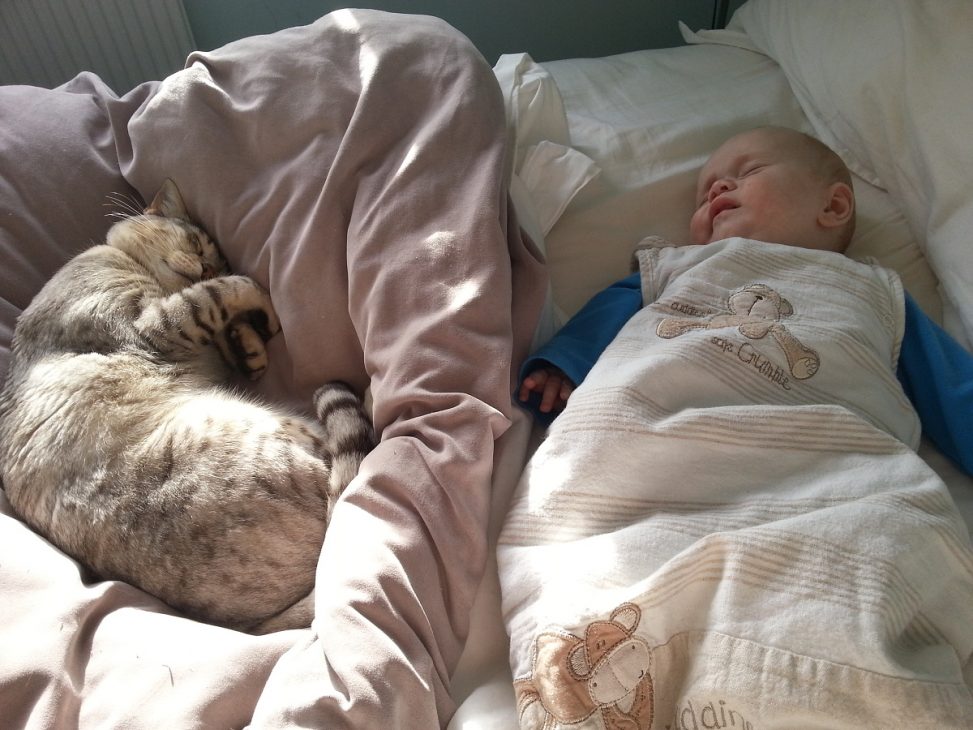 It has taken a few months but Pixel has started sleeping on our bed again. It started with her sleeping at the end but she has been working her way up the bed to her old spot. In the past she would also jump off as soon as CJ entered the room, however now she stands her ground. This means we now often have the two of them sleeping side-by-side.