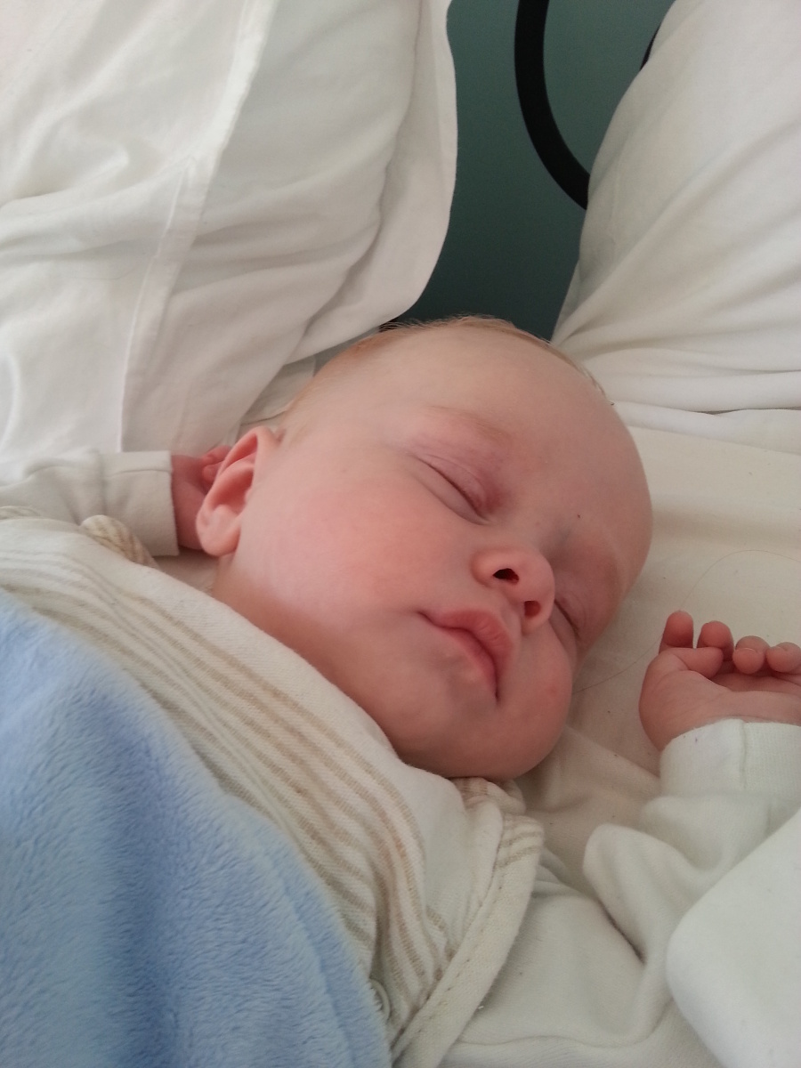 Helping S2 unwrap birthday presents was too much for CJ and he needed a little extra nap before starting the day.
