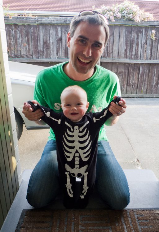We rushed back from our night away so we could ensure CJ was dressed and ready to go trick-a-treating! Although, in CJ’s case it was more like trick-a-hugging!