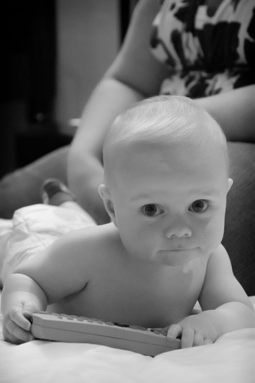We left CJ with my parents for a night, and my father decided to teach him to play with the remote.
