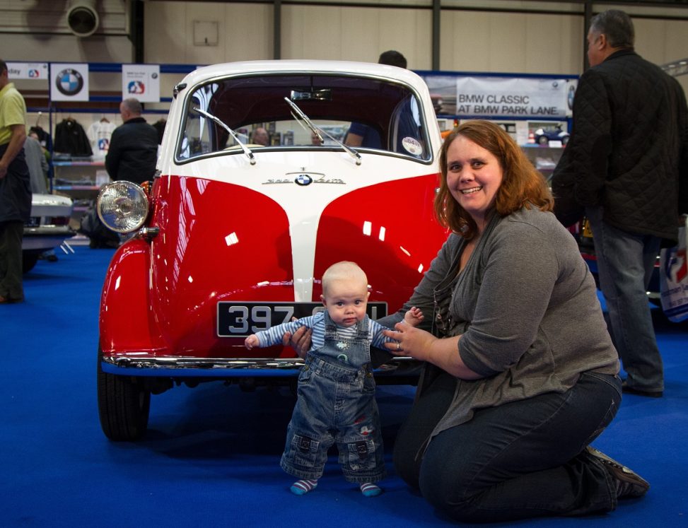 Today we went to the Classic Car Show in Birmingham. The range of cars on display was amazing, there was everything from American muscle, to early ford, to historic police and even his perfect size BMW Isetta for CJ.