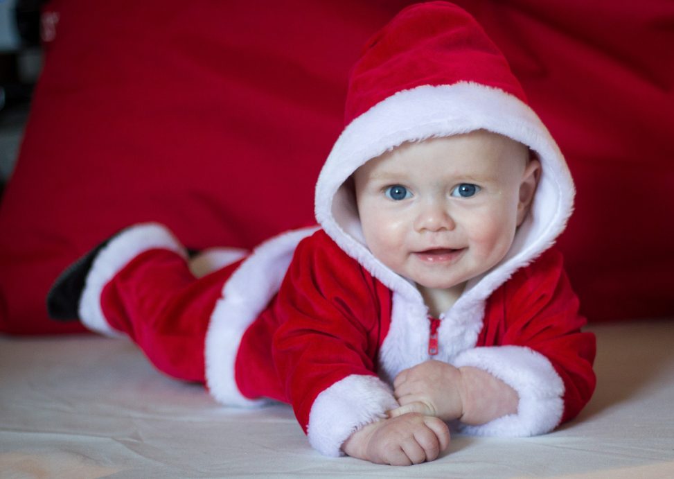 He was all smiles and giggles, right up until when we tried putting him in a fat little Xmas pudding costume. Our skinny wee boy seems to like being skinny.