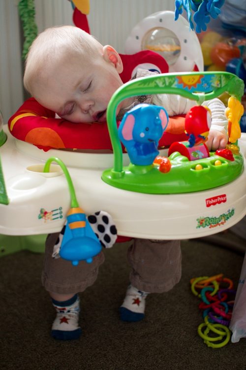 Today while packing his swimming bag (a 2 minute job), CJ was allowed to play in his Rainforest Bouncer. Apparently this was far too much excitement and mid-bounce he crashed. Luckily we managed to get him out and into his car seat without waking, so he had a good sleep before his swimming lesson!