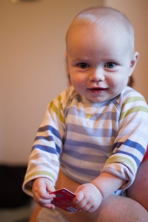 Today, he was desperate to get my wallet he could see on the couch, so I threw it his way.