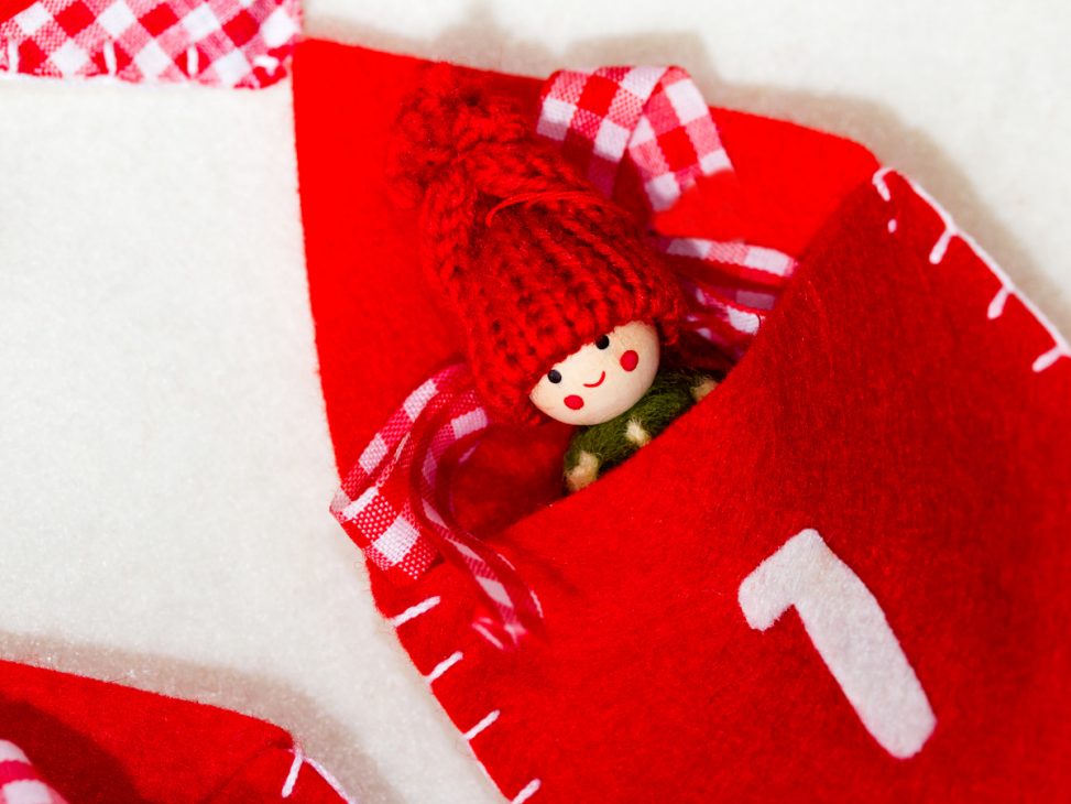 Our advent calendar has its pockets filled with xmas tree decorations from around the world – plus a few surprise parcels that are too big to fit in the pockets.