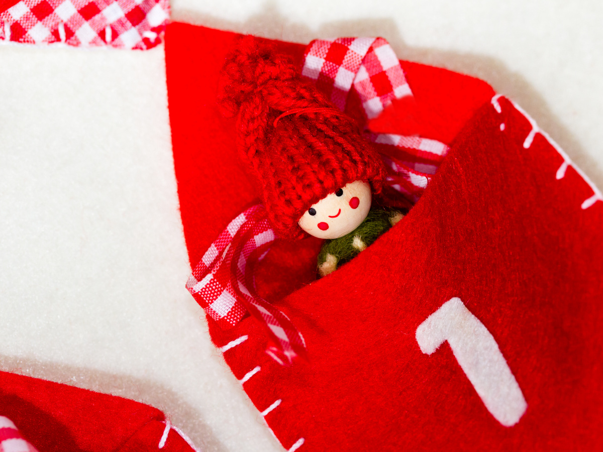 Our advent calendar has its pockets filled with xmas tree decorations from around the world – plus a few surprise parcels that are too big to fit in the pockets.