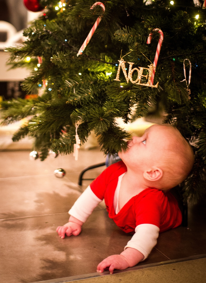 Wow mum look at this tree! There are heaps of sparkly things that I can almost reach.