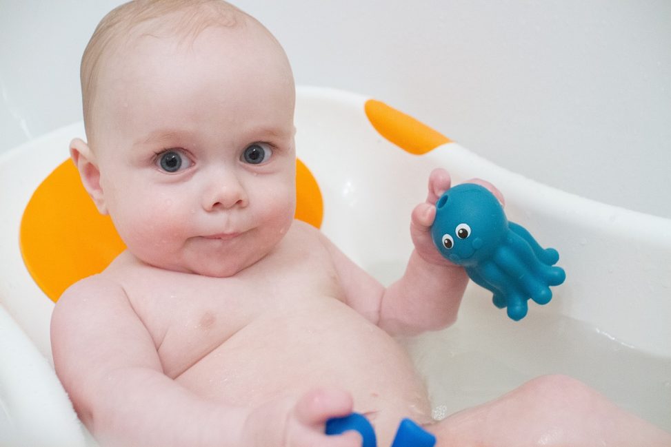 Bath time will never be the same now that he’s discovered squirty toys!