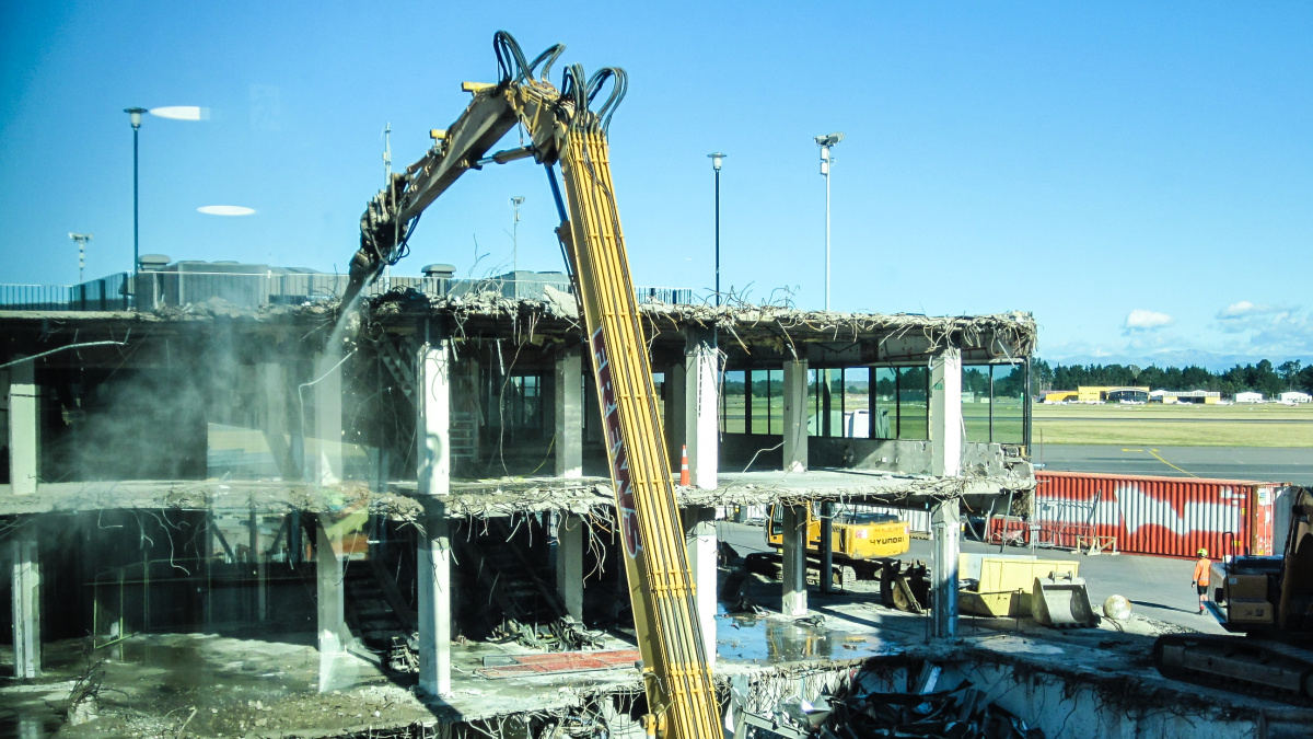 The last of the demolition at Christchurch Airport is underway, and the rebuilt airport terminal is fantastic – especially considering the airport was open for all flights the entire time of the rebuild on the same site as the old terminal.
